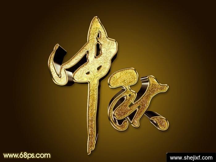 教程重点是表面文字的制作,基本上用图层样式来完成,不过制作的时候要加入一些中国传统的花纹或水墨图案,并转为金色浮雕效果即可。
