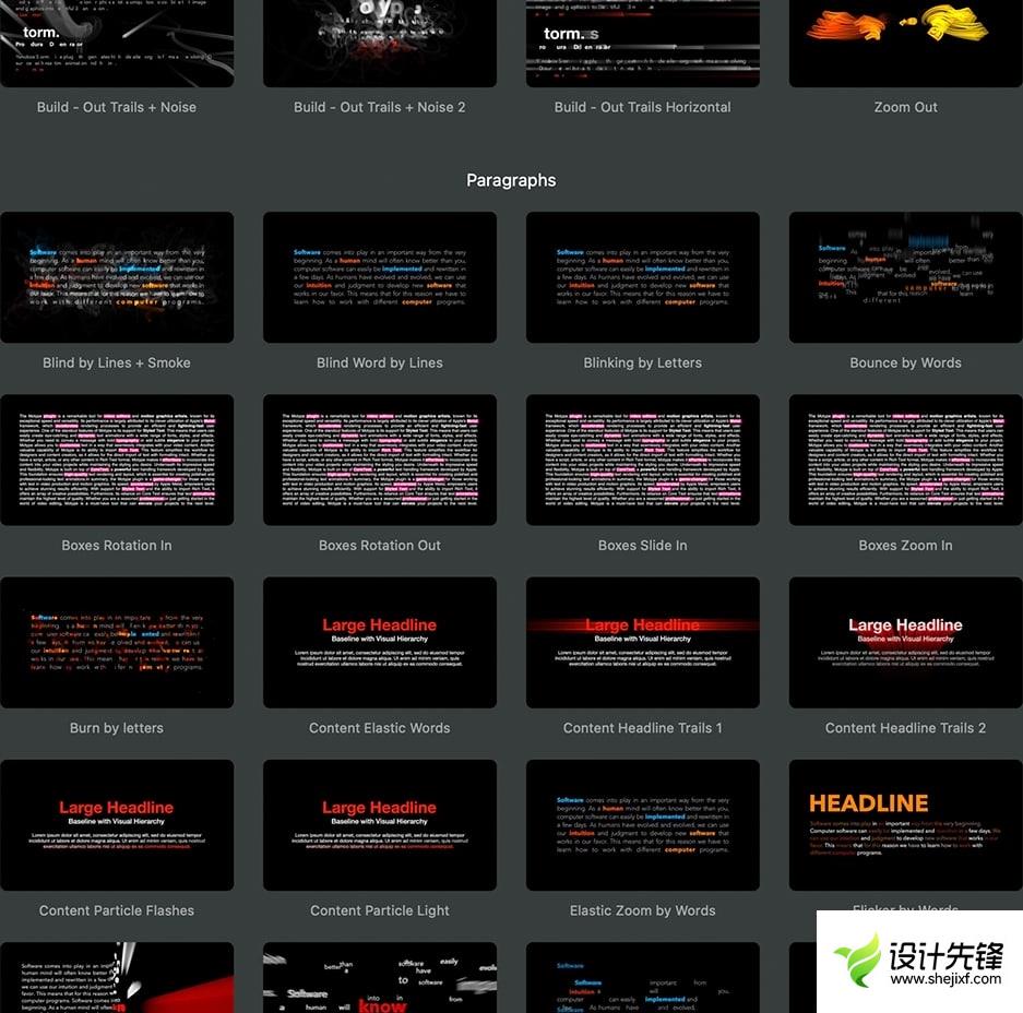 排版:对复杂段落应用高能量效果。 Motype 可以轻松提供独特的片头字幕,而手动创建却是一项艰巨的任务。