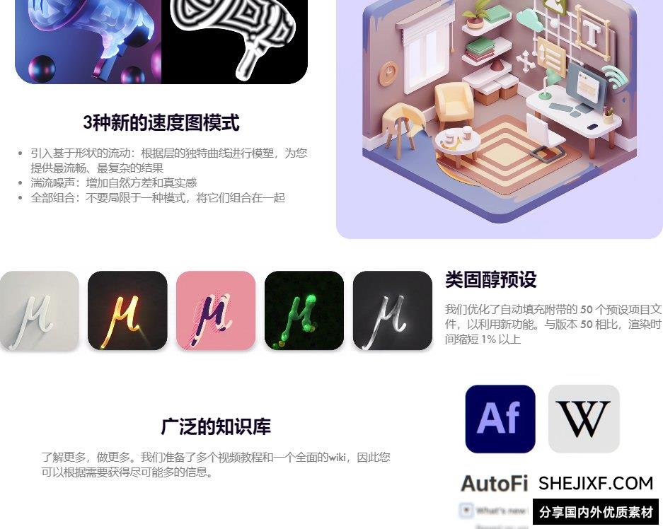 - 改进了50个原始 AE 项目文件预设