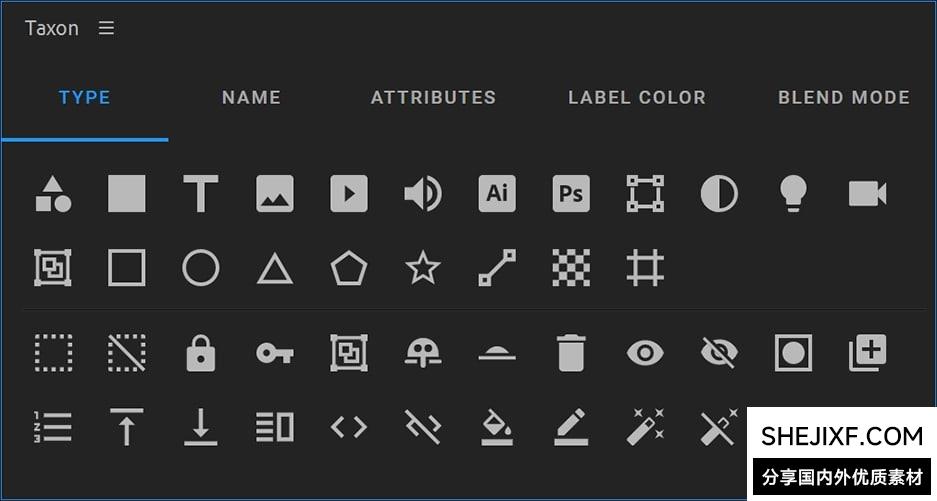 使用Taxon 脚本可以通过控制具有共享属性的图层来管理您的合成:类型、名称、标签颜色等等!通过控制具有相似属性的图层轻松管理您的合成。