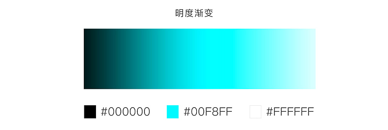其次为明度渐变,色彩的明度有两种,一是同一色相不同明度,如同一颜色加黑或者加白掺和以后能产生各种不同的明暗层次。二是各种颜色的不同纯度,每一种纯度都有与其相应的明度。色彩的明度变化也会影响到纯度,(如下图)蓝色加入黑色后明度降低,加上白色则明度提高。