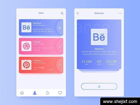 在iOS7以后,界面设计已经趋于扁平化,在扁平化设计兴起之时,渐变是设计师最简单的手法之一,也是移动端APP设计常用的设计技巧。