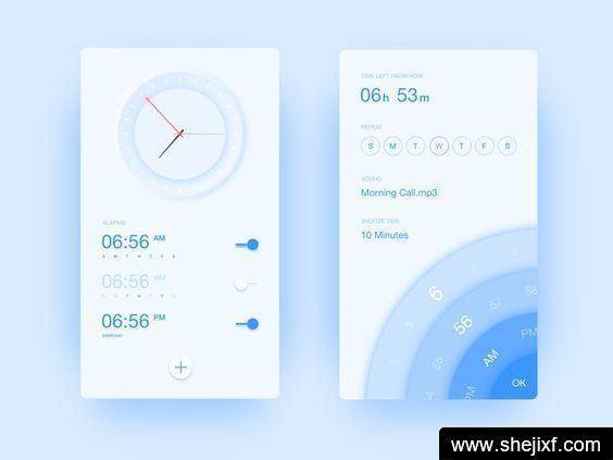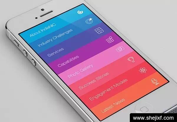 渐变的颜色不只可以运用在一个色块上,还可以运用在一组色块上。设计师会采用相同色、同类色、近似色、对比色、补色来将每个菜单项清晰区分开,让界面平衡在一个频率上,这样的画面多姿多彩,也更富有节奏感和舒适性。