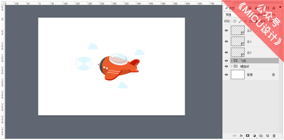 分别将“飞机”、“螺旋桨”两个图层转换为智能对象。