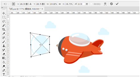 在“时间轴”面板中选择“螺旋桨”中变换图标,然后按Ctrl+T组合键进入自由变化模式,接着按住Alt键适当的调整螺旋桨的透视角度。