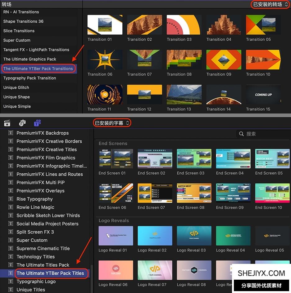 The Ultimate YouTuber Pack这是适合您频道的完整专业套件,包含 100 个项目,适用于FCPX和Motion软件。我们重新设计了整个底层逻辑,因此 Final Cut Pro 专用用户可以轻松地从这个令人惊叹的包中受益! 他们主要包含:20 个徽标Logo显示动画,25 个下三分之一字幕条动画,15 个过渡转场动画,10 个片尾屏幕,10 个侧面信息和20 个标题。您可以直接在 FCPX 中使用它,所有参数都是可编辑的,并且可以在几秒钟内完成编辑。调整颜色,使其符合您的身份,剩下的就是交付您的视频。