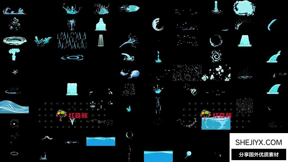特别说明:此素材提供的是卡通二维水流液体MG动画特效,没有预览视频中的实拍人物风景文字图片等元素。