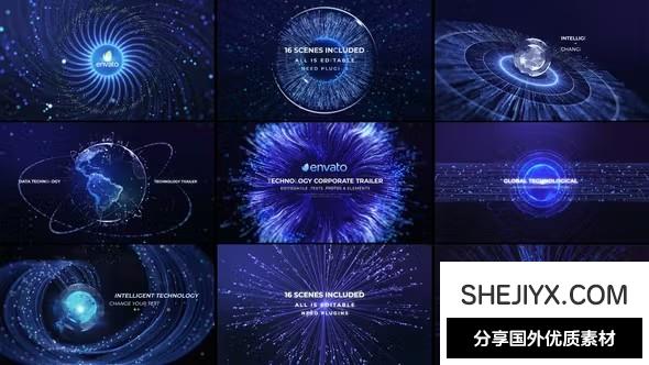 Technology Trailer 是一套高科技人工智能5G互联技术电子商务宣传片模板,需要Trapcode Particular、Trapcode Form、Element 3d、Plexus、Stardus、Saber、FL Depth Of Field、Optical Flares, Real Glow插件制作。除了项目中的c04 Earth scene 外,所有的都可以编辑。可以更改大小、相机、粒子、文本等。