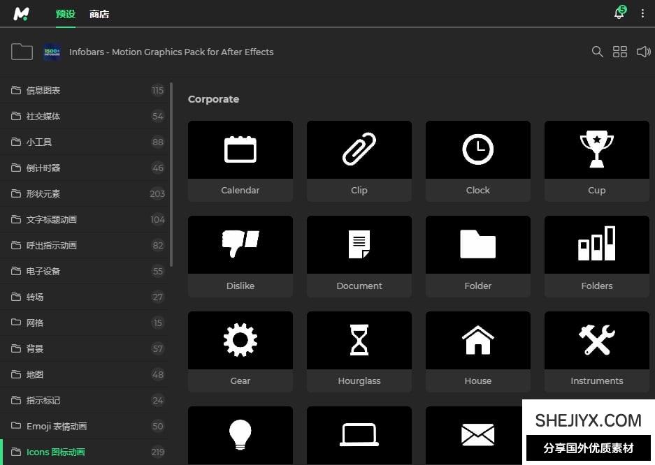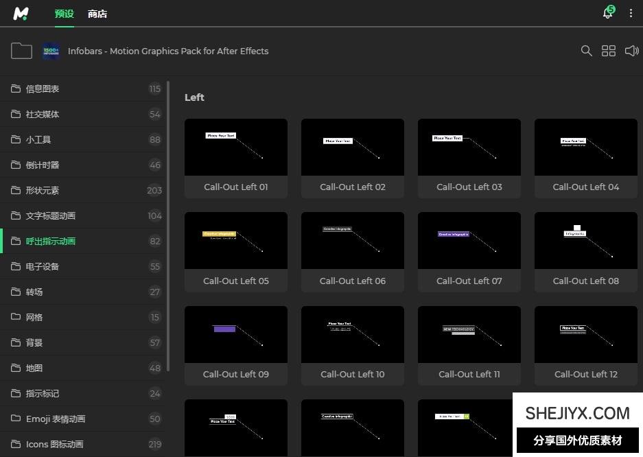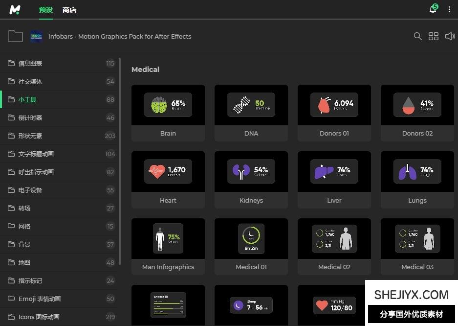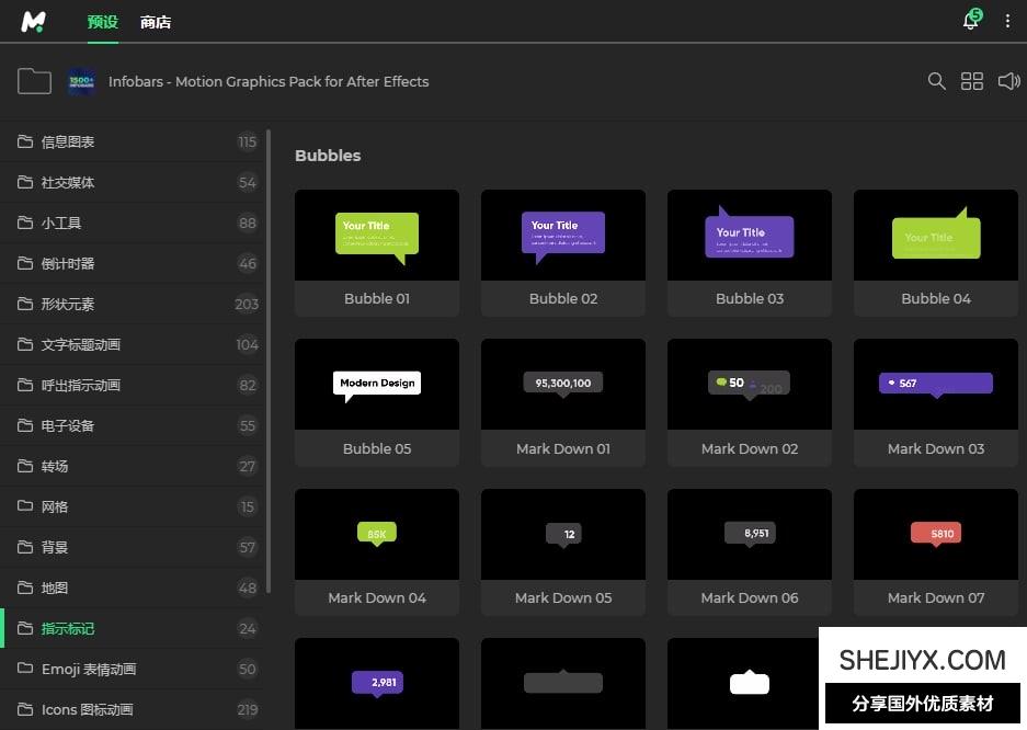 包含什么:信息图表、社交媒体、短信聊天动画、小部件、医疗图形动画、倒计时器、形状元素、文字标题动画、下三分之一字幕条、办公设备、呼出指示线、过渡、网格动画、背景、地图、标记和别针、Emoji表情符号、旗帜、图标、支架、音效等18种类别。所有元素都是用Motion Bro 4汉化脚本调用,使用简单方便。包含视频教程。