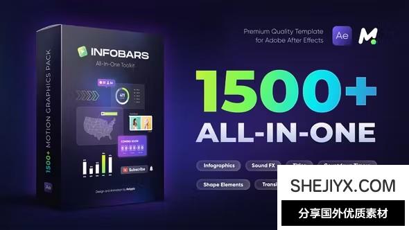 Motion Graphics Pack包含1500多个独家资源,包括信息图表、倒计时器、过渡、标题、形状元素、社交媒体等等。只需点击几下即可创建具有专业外观的项目。您需要的所有元素现在都可供您使用。