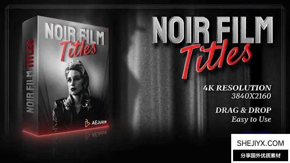 为您的视频打造黑色美学!一套适用于 After Effects、Premiere Pro 和其他视频编辑器的黑色电影标题包带您进入电影的黄金时代。该合集的特色是精心制作的标题,带有演员姓名、“结局”标签以及 40 年代和 50 年代标志性风格的粗体标题。为您的下一个项目增添一抹复古魅力!