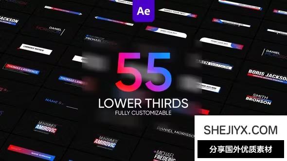 55个完全可定制的下三分之一字幕条动画,响应式设计和自动调整大小的现代版式,支持任意分辨率设计,无需插件,使用简单。