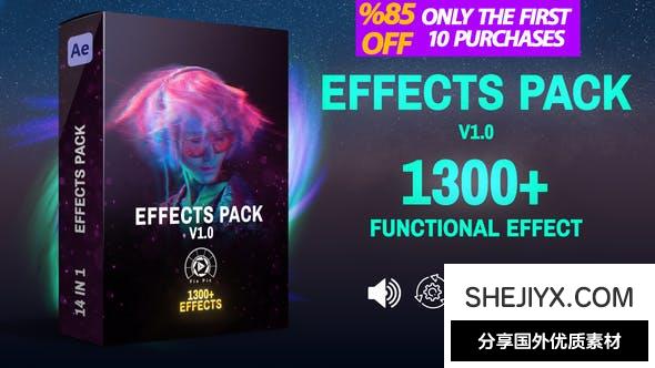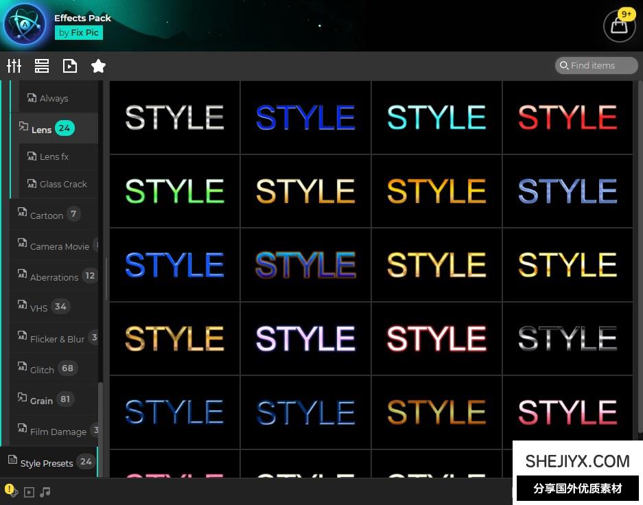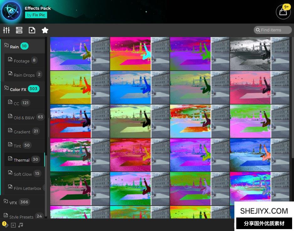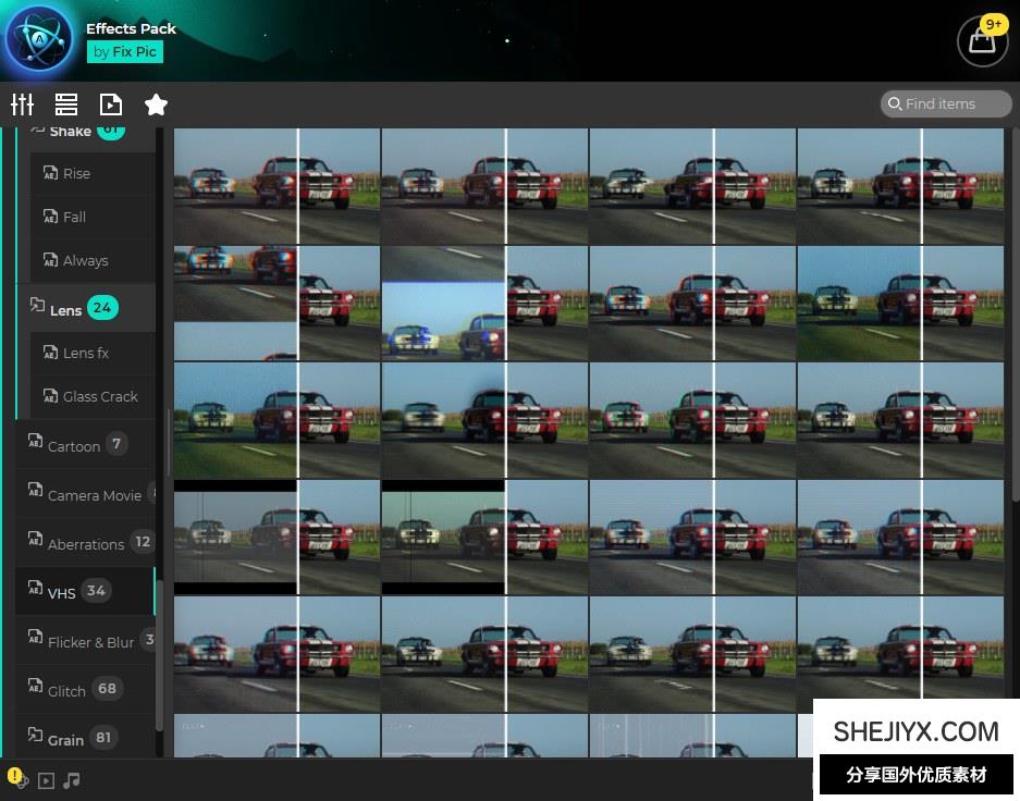 366个视频特效:动态、抖动、卡通、RGB色彩分离、VHS、闪烁模糊、信号损坏、噪点、电影污迹等