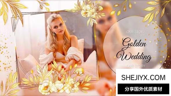 Wedding Slideshow 婚礼幻灯片使用金色为主题,包含9个独特的场景,轻松营造出浪漫而奢华的氛围。使用简单,只需替换照片、视频和文字内容即可