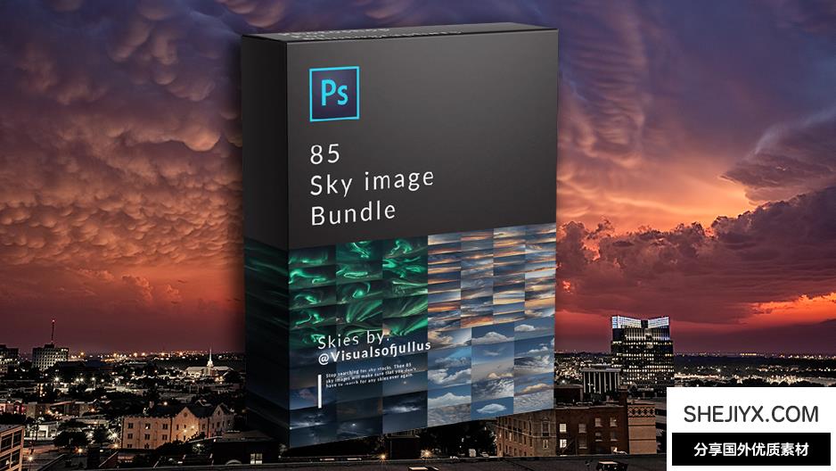 素材包含4种不同类别的85种天空:夜晚,白天,北极光和日落。