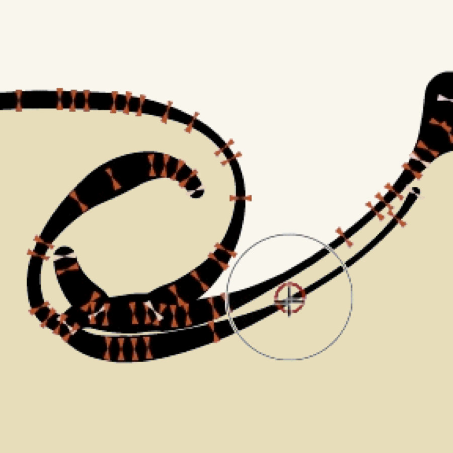 首先,可以让对象沿路径边缘旋转并以切线对齐,在画一些特殊图形特别是图形之间有交错界面的时候很实用,还可以实现对复杂纹理的填充处理。