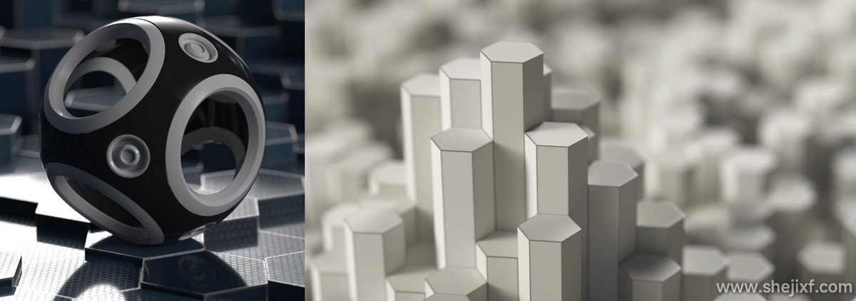 带有 xpresso 控制的六边形形状的美丽 mograph 场景
