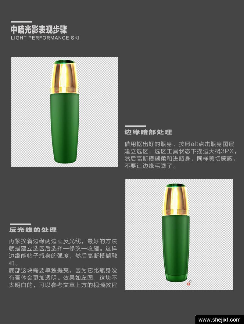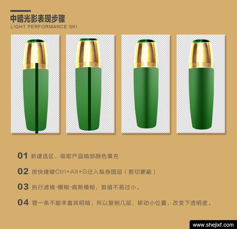 我们在做电商设计的时候,经常需要对产品图进行修图,调整光影效果,其中对称光效果是常用的一种手法今天就给大家分享下这种修图的方法,结尾附上高清视频教程和素材下载地址: